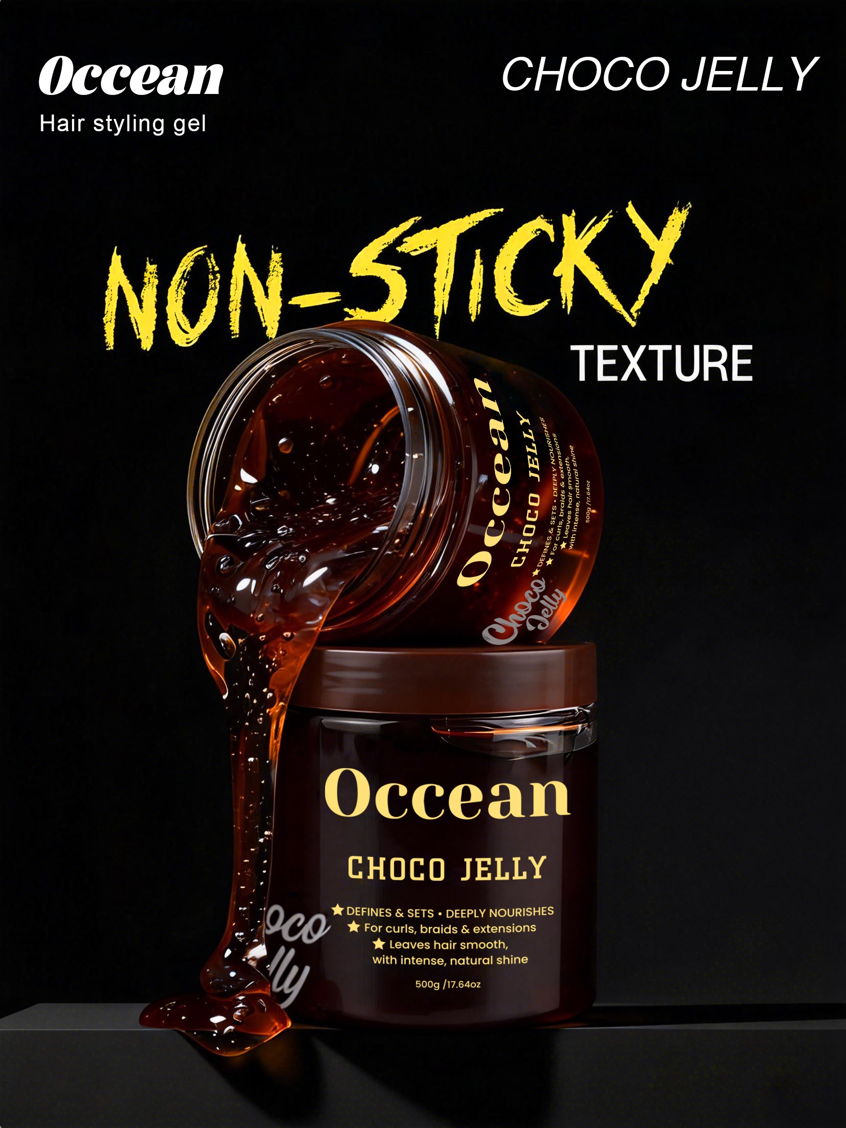 OCCEAN Choco Jelly is a high-performance hair styling jelly designed to deliver strong definition, long-lasting hold, and elegant shine without weighing the hair down.